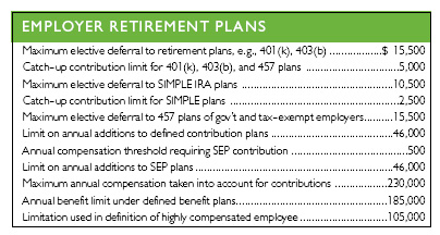 Clearly, social security will not be your only source of retirement income – you must do more on your own to prepare for retirement. Investment vehicles like a Traditional or Roth Individual Retirement Account (IRA) may make sense for you. Both Traditional and Roth IRAs offer substantial tax advantages and, depending on your income and federal tax filing status, you can contribute up to $5,000 a year to IRAs. In addition, if you’ve reached age 50, you can contribute as much as $6,000.